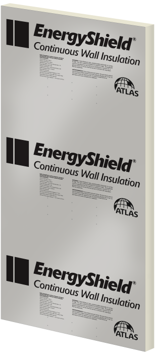 Atlas EnergyShield is a high-performance continuous insulation board composed of a closed-cell polyisocyanurate foam core with tri-laminate reflective aluminum foil facers. It is manufactured using environmentally responsible processes and formulations, containing no CFCs, HCFCs or HFCs, resulting in Zero Ozone Depletion Potential (ODP) and Negligible Global Warming Potential (GWP). EnergyShield is GREENGUARD Gold certified and contributes to LEED credits.