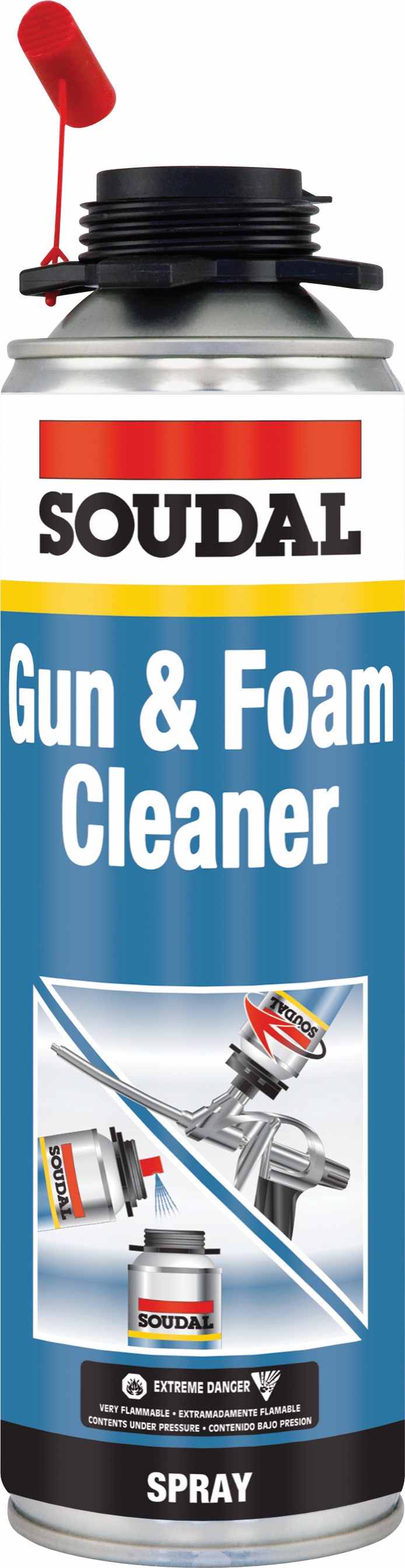 Soudal Gun & Foam Cleaner is a solvent cleaner specifically designed for cleaning uncured PU foam.
