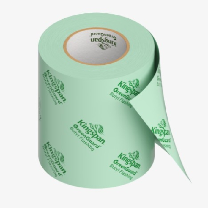 Kingspan GreenGuard® SuperStretch® Butyl Flashing is a top-of-the-line self-adhering flashing membrane comprising a polyolefin film with a premium butyl adhesive. It is stretches to fit arched windows, corners and round protrusions. It adheres across a full range of installation temperatures including lower temperatures, ensuring effectiveness in all climates, and it conforms well to irregular surfaces, eliminating gaps that could create water canals.