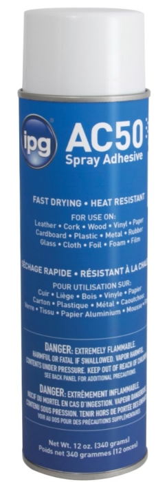 ipg Spray Adhesive, 12 oz Net Content, Aerosol Can Container, Composition: 20 to 40% Acetone, 20 to 40% Propane, 10 to 20% Dimethyl Ether, 10 to 20% n-Hexane, 2.5 to 10% 2-Methylpentane, 1 to 2.5% 3-Methylpentane, 20 to 40% Other Components, Gas Form, Clear/Light Straw, 15 min Curing Time, -156 deg F Flash Point, 39.8 % VOC, Applicable Materials: Cardboard, Carpet, Fabric, Glass, Leather, Metal, Paper, Plastic, Wood, 70 to 160 deg F