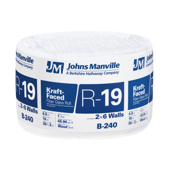 JM Insulation Roll, 6-1/2 in Thickness, 15 in Width, 39 ft 2 in Length, Kraft Facing, R-Value: 19, Fiberglass