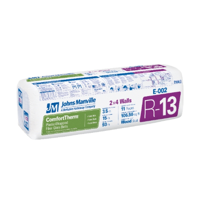 Johns Manville ComfortTherm® poly-encapsulated thermal and acoustical insulation offers R-Values up to R-30 and is available in precut batts to fit standard wall cavities or rolls for custom installation in any size of wall cavity. ComfortTherm® insulation is wrapped in plastic for dust-free, itch-free installation and can be used in a wide variety of wood frame, engineered wood and steel frame construction applications, including new construction and retrofit.