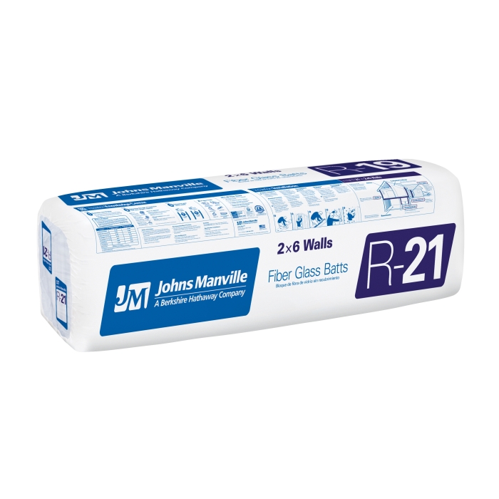 JM Insulation Batt, 5-1/2 in Thickness, 16 in Width, 96 in Length, Unfaced Facing, R-Value: R21, Fiberglass, 74.66 sq-ft Coverage Area, Resists: Fire, Fungi, Thermal