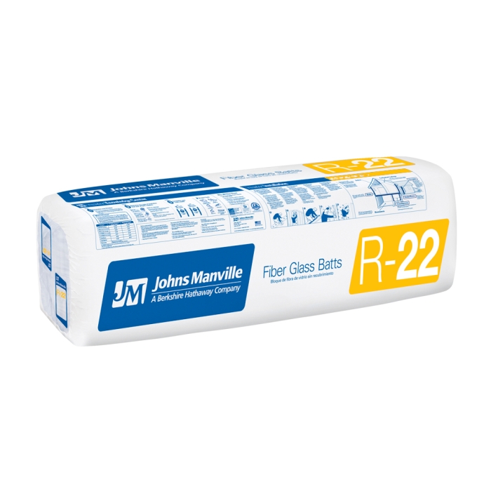 JM Batt Insulation, 7-1/2 in Thickness, 15 in Width, 48 in Length, Unfaced Facing, R-Value: R-22, Ceiling, Floor, Wall Installation, Fiberglass, 75 sq-ft Coverage Area, Resists: Fire, Fungi, Thermal