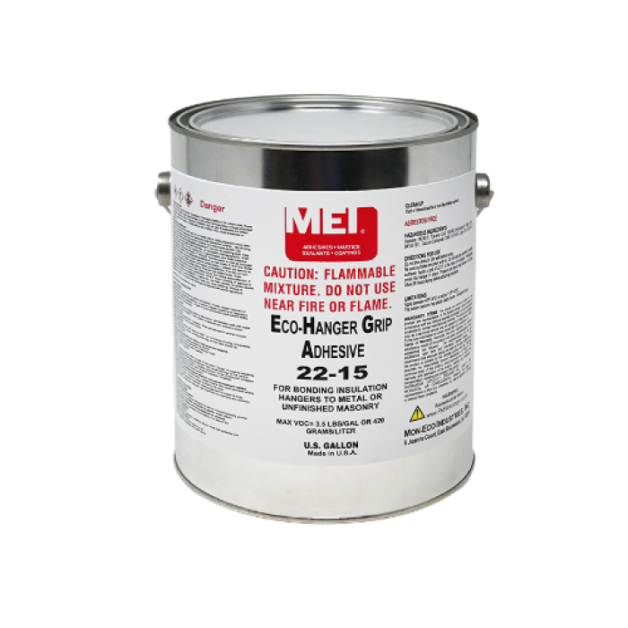 22-15 Eco-Hanger Grip Adhesive is a construction type paste adhesive specially designed for bonding insulation hangers to metal ducts, and unfinished masonry surfaces. 22-15 Eco-Hanger Grip Adhesive dries to a tough, yet resilient bond that withstands thermal cycling and shock. 22-15 Eco-Hanger Grip Adhesive has been specially formulated to meet reduced VOC requirements.