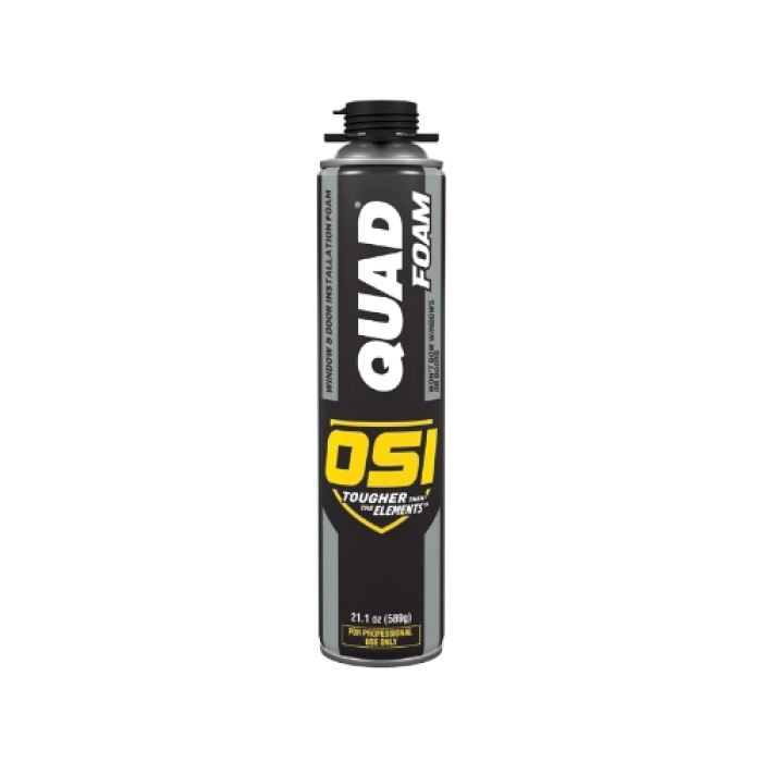 OSI® QUAD® FOAM offers superior protection from the elements. Its high ratio of closed-cell structures provides the ideal barrier to air and moisture while delivering optimal insulation performance. The product's combination of strength and flexibility also allows it to withstand years of seasonal expansion and contraction. OSI QUAD FOAM is a high-yield, quick-setting formula available in both straw and gun-grade cans. It works in all regions of the country during both the high temperatures of summer and the extreme lows of winter.