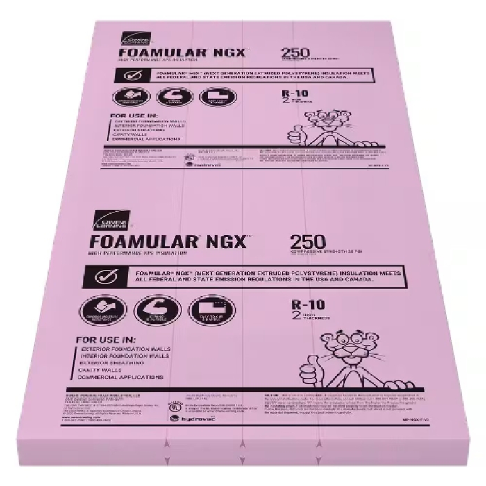 Owens Corning® FOAMULAR® and FOAMULAR® NGX™ 250 extruded polystyrene (XPS) insulations are closed-cell, moisture-resistant rigid foam boards well-suited to meet the needs of a wide variety of building applications. Both products are great for above and below grade residential and commercial applications, such as perimeter/foundation, cavity wall, precast concrete, under slab and other applications.