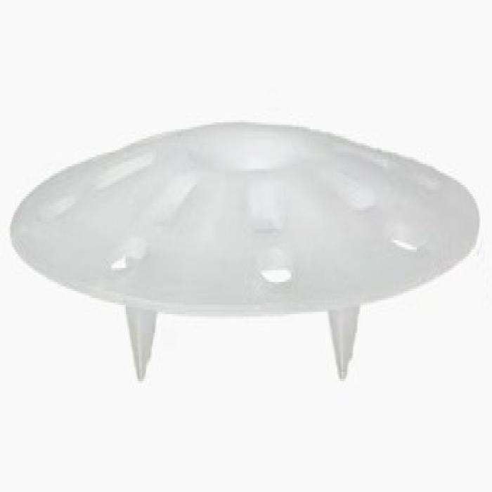 1-3/4" diameter, white washer with keyholes. Prongs enable pre-spotting into insulation for easy on-the-wall fastener assembly.