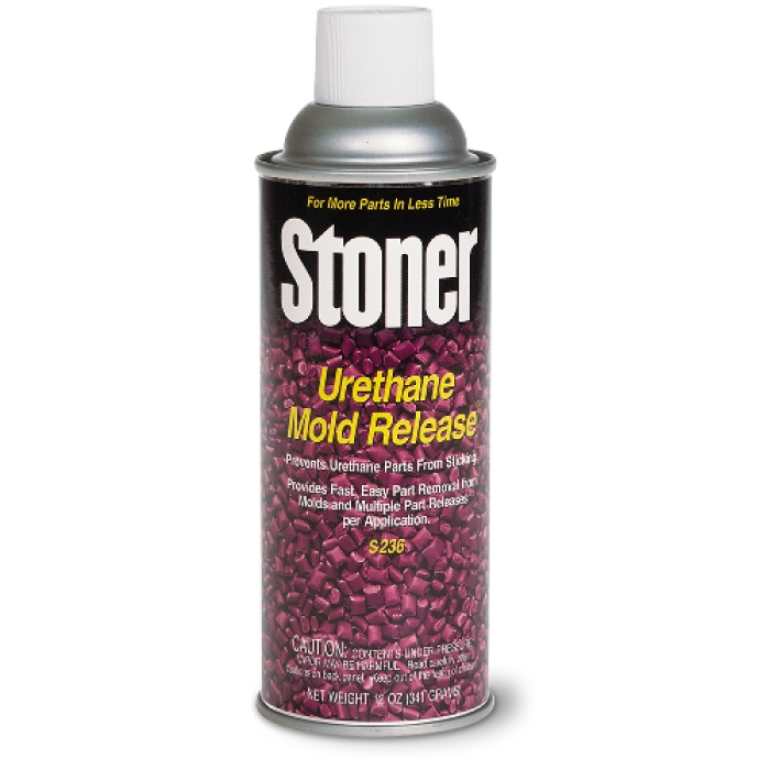 S236 Urethane Mold Release is specially formulated as a release agent and anti-stick lubricant for molded urethanes and similar materials. Saves time by providing fast, easy urethane part removal from molds and multiple part releases per application. Improves part appearance and reduces defects caused by sticking. S236 increases molding efficiency in many processes including injection, pour cast, and extrusion molding. Economical – a light coating produces best results. Formulated with high levels of user and environmental safety. Contains no chlorinated solvents such as 1,1,1 trichloroethane or methylene chloride. Colorless and non-staining.